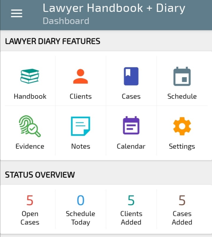 Another App that I found useful is the ‘Lawyer Handbook+Diary App’ by Psycho Technology. It is an Indian App but it will be useful to you too. The image below is the screenshot of the app. You can list your clients, their cases, and the status of their case. I find this useful except that the Handbooks are all Indian laws and there is no way to change it. Nevertheless, this can help you summarize your cases.