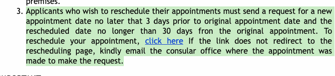 2. The Link to reschedule your appointment is located in the email sent to you by DFA. Or visit this link https://www.passport.gov.ph/appointment/view