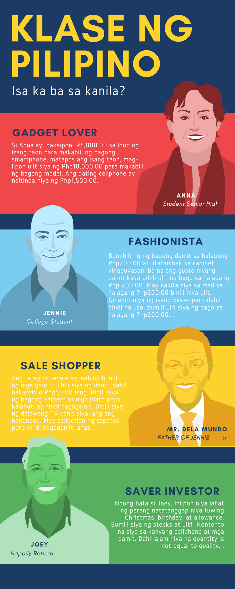 Sino sa kanila ang wais at sino ang biktima ng consumerism? Kung napansin niyo, sina Anna, Jennie, at Mr. Dela Mundo ay ginagamit ang pera sa mga unnecessary things o mga bagay na hindi natin kailangan. Hindi lang pera ang nasasayang kung hindi pati space sa ating bagay. Ang mabilis na pagbili at pagdispose ng gamit ay matatawag na consummerism.